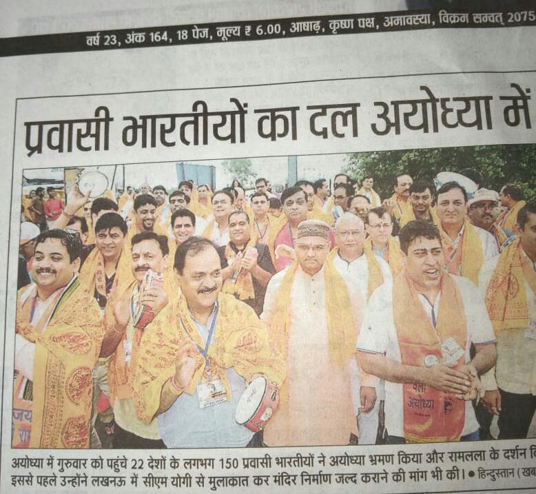 The programme started from Vishwa Hindu Parishad International office at RK Puram Delhi with registration and welcome of guests. There were 120 guests from India and across the World from 15 countries lead by Shri Sohan Goenka -President of World Hindu Economic Forum,Hongkong. The aim was to request the Central and the State Govt of UP to expedite the process of clearing the decks for making of the Ram Mandir at Ayodhya.